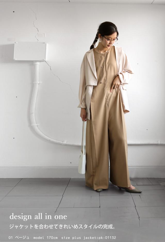 すっきりとしたIラインシルエットが、レディな雰囲気を高めてくれるオールインワン。