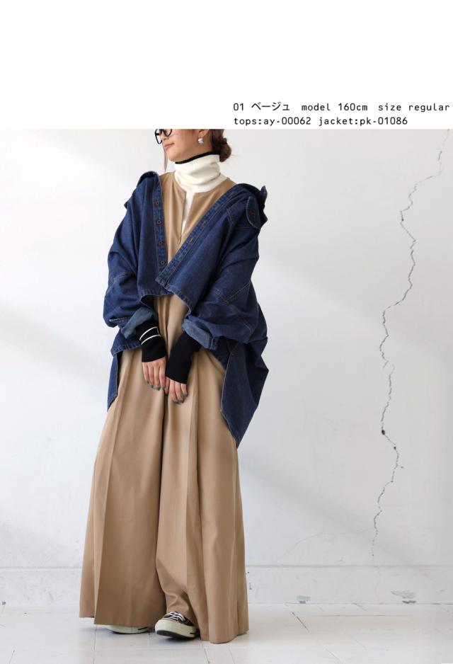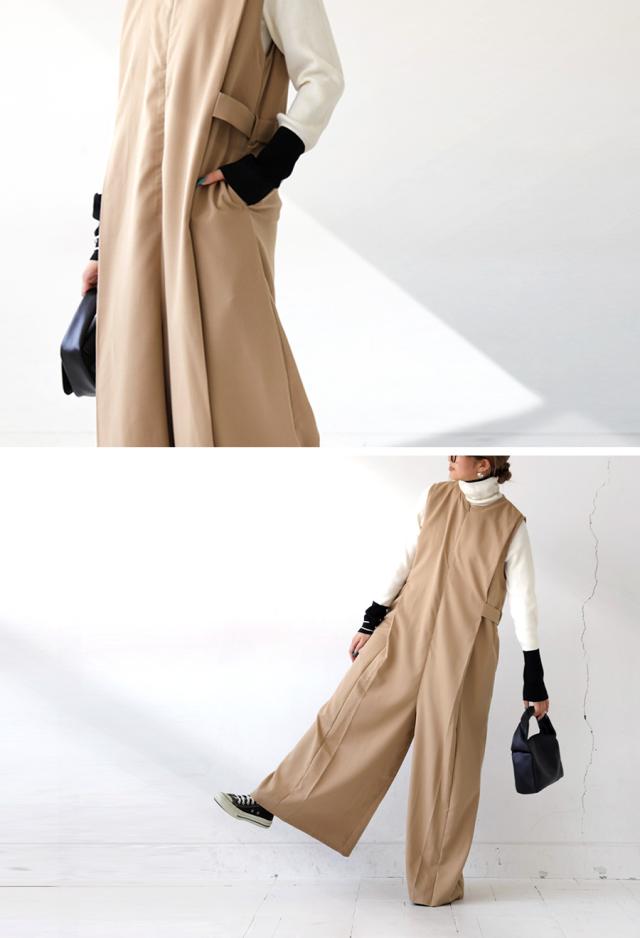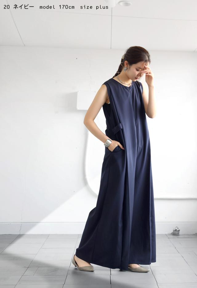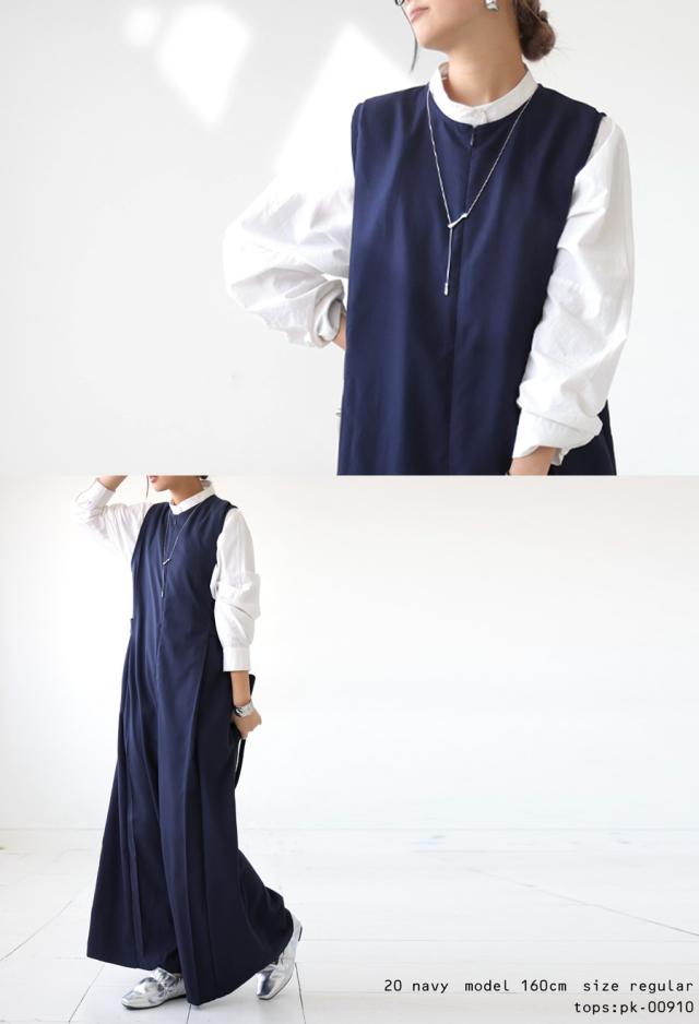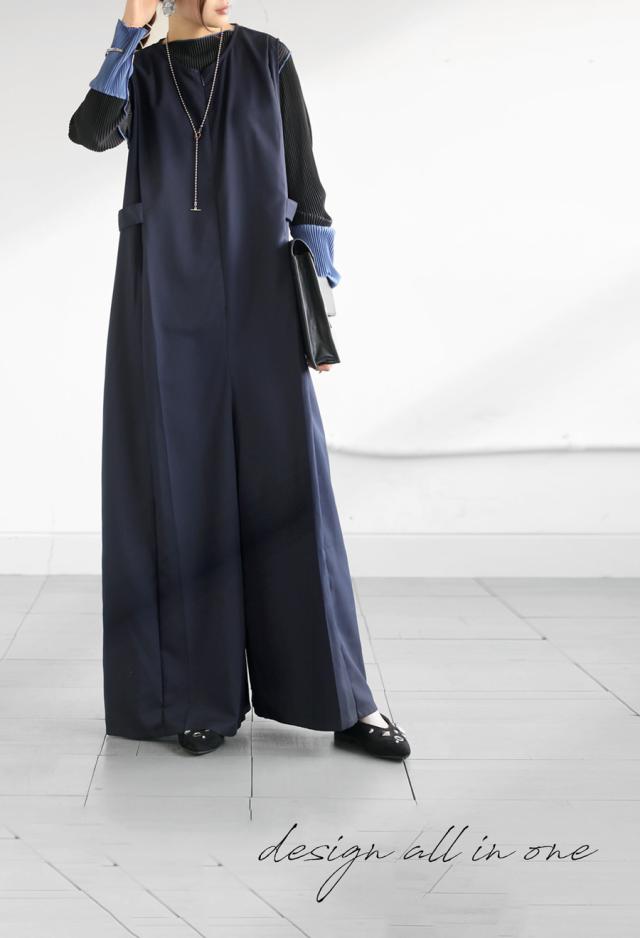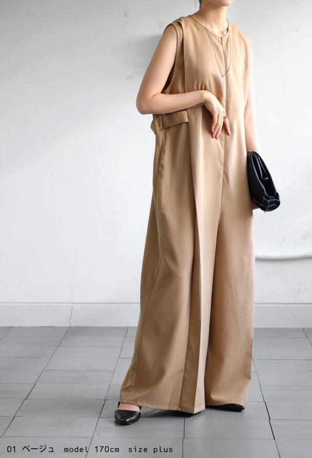 pk-01176 ノースリーブ ロング ロングパンツ ゆったり シンプル ワイド きれいめ 上品 高級感 モード 細見え 着痩せ 体型カバー レイヤード 重ね着 サロペット オーバーオール
