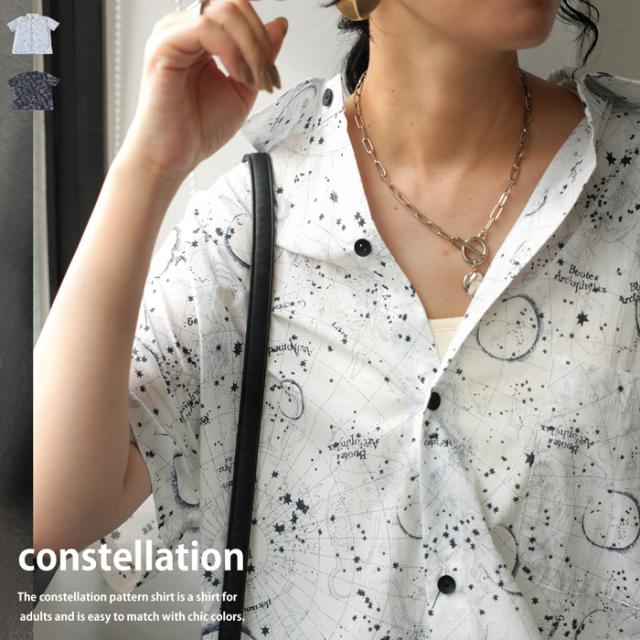 【検索ワード】星座柄シャツ シャツ レディース トップス 半袖 柄 綿100 柄シャツ 星空 レギュラーカラー ゆったり 前開き 羽織り ブラウス シンプル カジュアルシャツ 綿 コットン 星 透け 大きめ 大きいサイズ 総柄 ユニセックス antiqua treecafe アンティカ ツリーカフェ 大人 おしゃれ 10代 20代 30代 40代 50代 60代 春 夏 お洒落 カジュアル かわいい かっこいい あんてぃか
