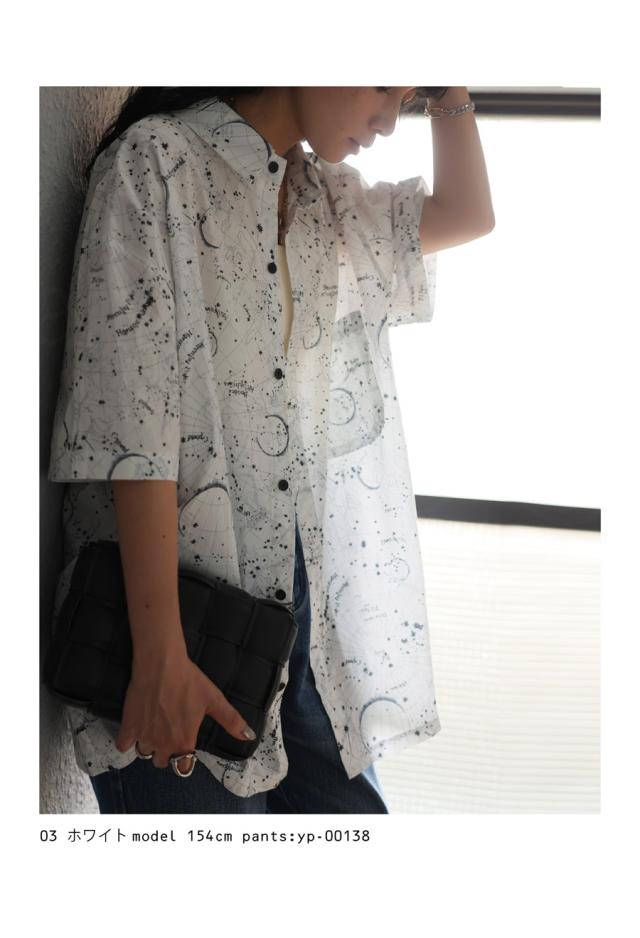 ze-01100 綿100 柄シャツ 星空 レギュラーカラー ゆったり 前開き 羽織り ブラウス シンプル カジュアルシャツ 綿 コットン 星 透け 大きめ 大きいサイズ 総柄 ユニセックス