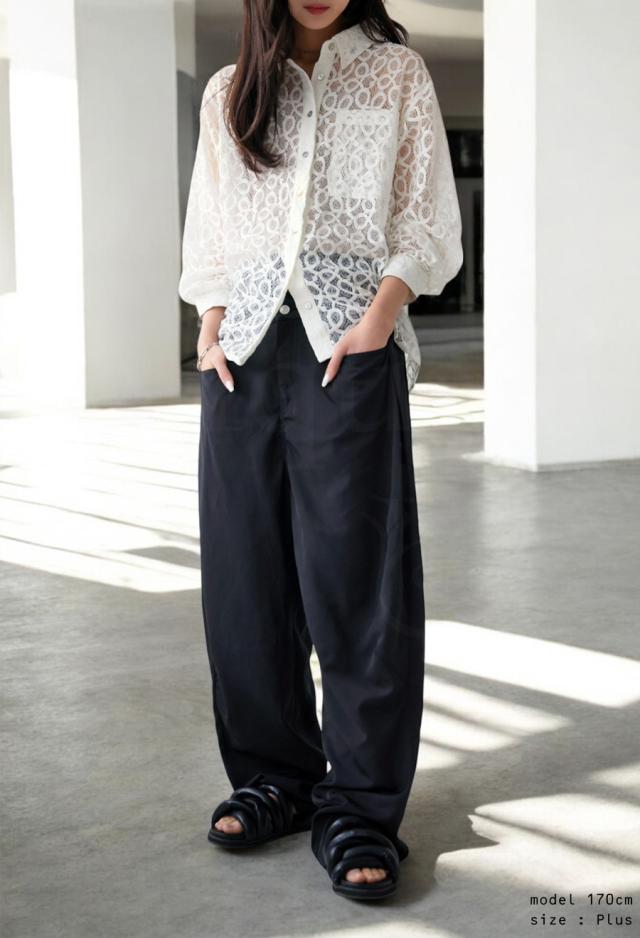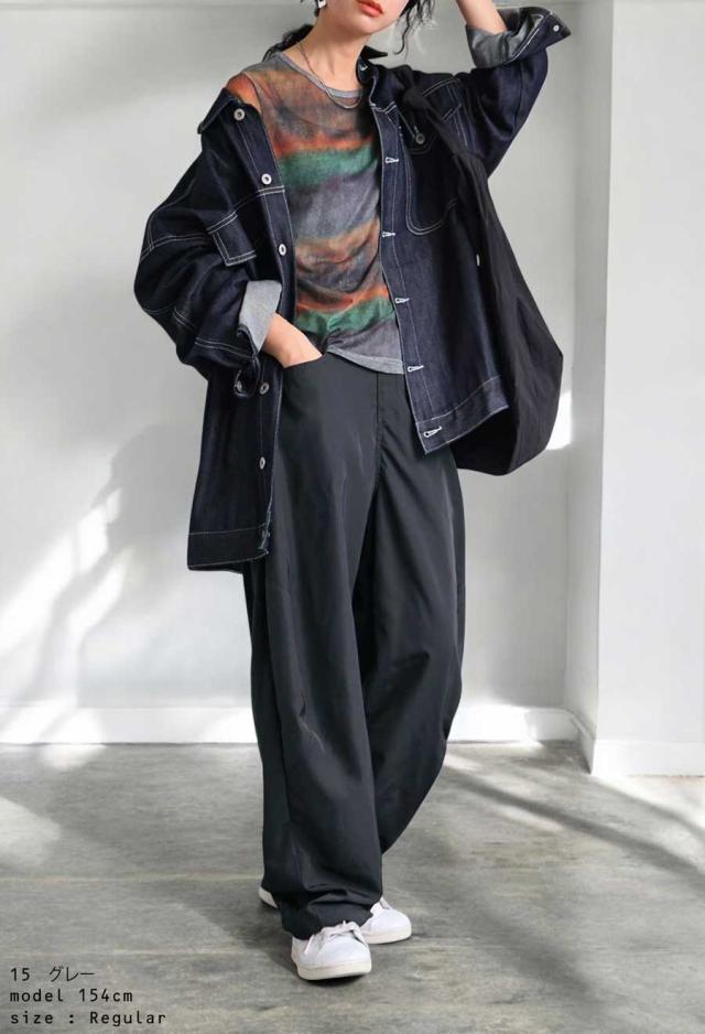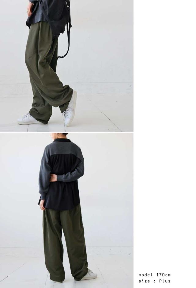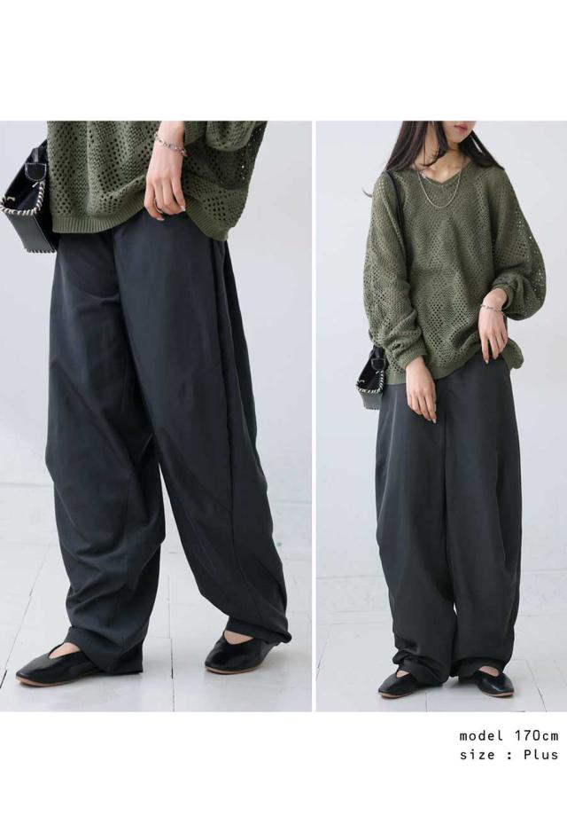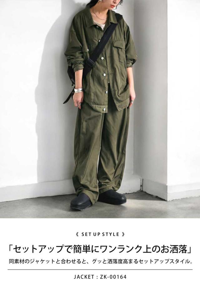 zk-00165 ロング 長ズボン 無地 セットアップ タックパンツ タック ギャザー 立体的 ファスナー開き ポケット付き ウエスト 後ろゴム ゆったり サイズ展開 シンプル きれいめ