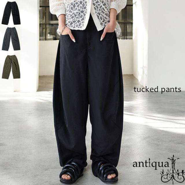 【検索ワード】タックパンツ パンツ レディース ボトムス ロング 長ズボン 無地 セットアップ タックパンツ タック ギャザー 立体的 ファスナー開き ポケット付き ウエスト 後ろゴム ゆったり サイズ展開 シンプル きれいめ ツヤ感 上品 モード スタイリッシュ エフォートレス 体型カバー 細見え 着痩せ 大きめ 大きいサイズ デザインパンツ ロングパンツ ユニセックス antiqua treecafe アンティカ ツリーカフェ 大人 おしゃれ 10代 20代 30代 40代 50代 60代 春 夏 秋 冬 オールシーズン お洒落 カジュアル かわいい かっこいい あんてぃか