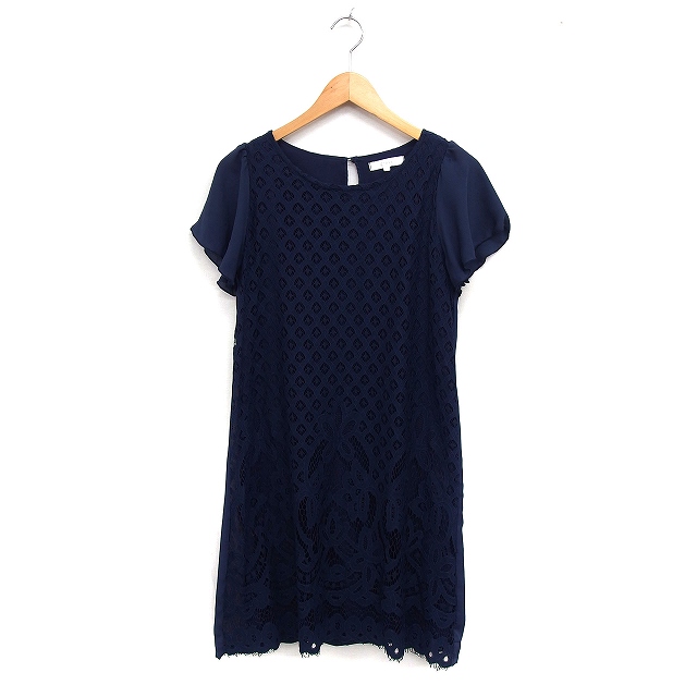 【中古】グローブ grove レース ワンピース 半袖 ひざ丈 シフォン M ネイビー 紺 /FT39 レディース