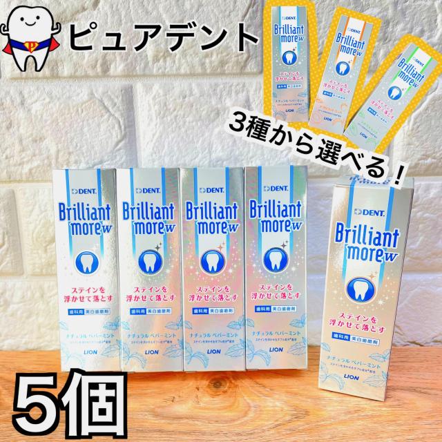 【セール中!】ライオン ブリリアントモア W 90g ナチュラルペパーミント アプリコットミント シトラスミント 5本セット DENT.Brilliant more 医薬部外品