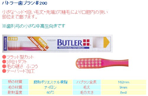 【メール便専用送料無料】 バトラー 歯ブラシ #200 12本入 【サンスター】BUTLER 200 (一般用/ミディアム)