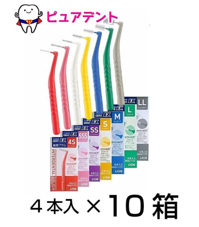 【メール便専用送料無料】ライオン DENT.EX 歯間ブラシ 4本入 10個セット サイズ 4S SSS SS S L LL