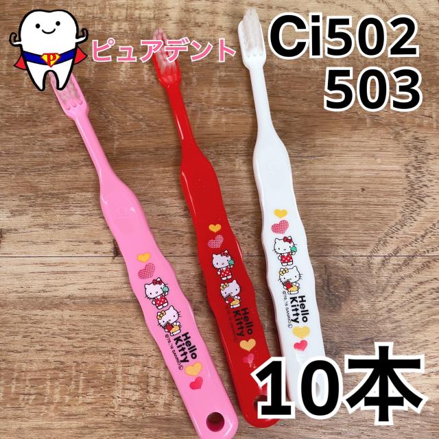 メール便送料無料 Ci502/503 ハローキティ歯ブラシ S/M やわらかめ/ふつう 10本セット 子供用歯ブラシ 乳幼児 小学校低学年