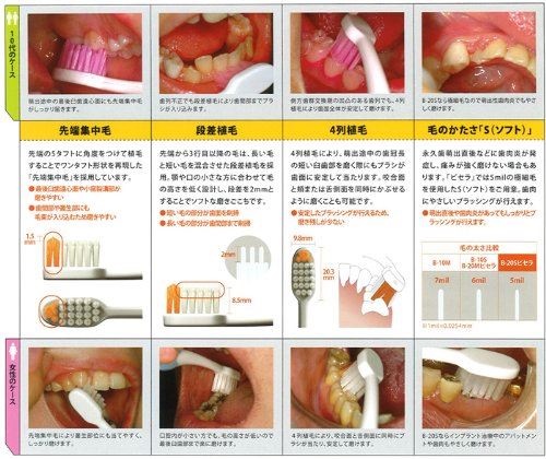 4列植毛による磨きやすさと、コンパクトなヘッド&ハンドルによる磨きやすさ、持ちやすさをあわせもっています。