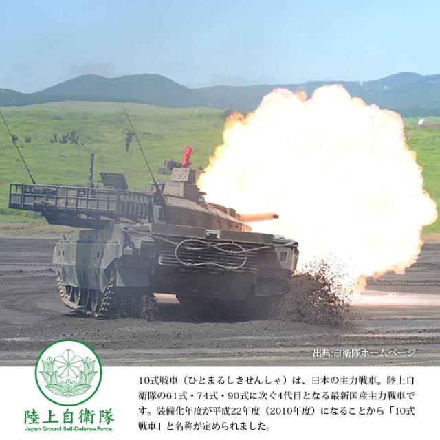 本商品は、陸上自衛隊(JGSDF)が運用している主力戦車の「10式戦車/ひとまるしきせんしゃ」を題材としたオリジナル商品です。