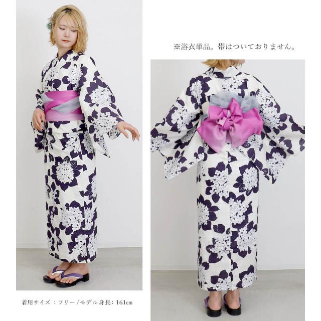 浴衣 レディース 女性浴衣 単品 浴衣単品 仕立て上がり 綿 浴衣レディース 女性用 ホワイト ネイビー 紫陽花 お洒落