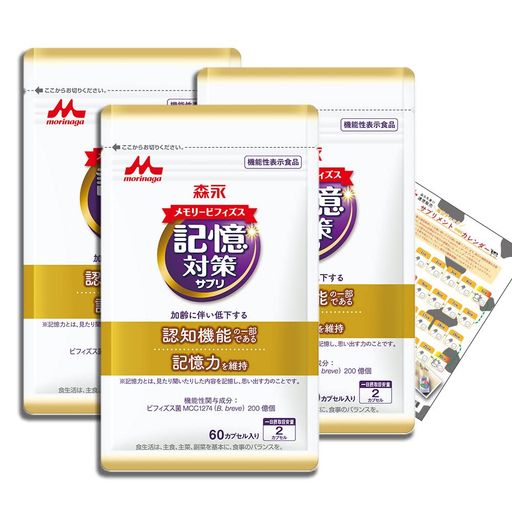 【森永乳業 公式】メモリービフィズス 記憶対策サプリ [ 機能性表示食品 記憶力 認知 サプリ 脳活 ビフィズス菌 ] 1袋/60カプセル入り×3袋