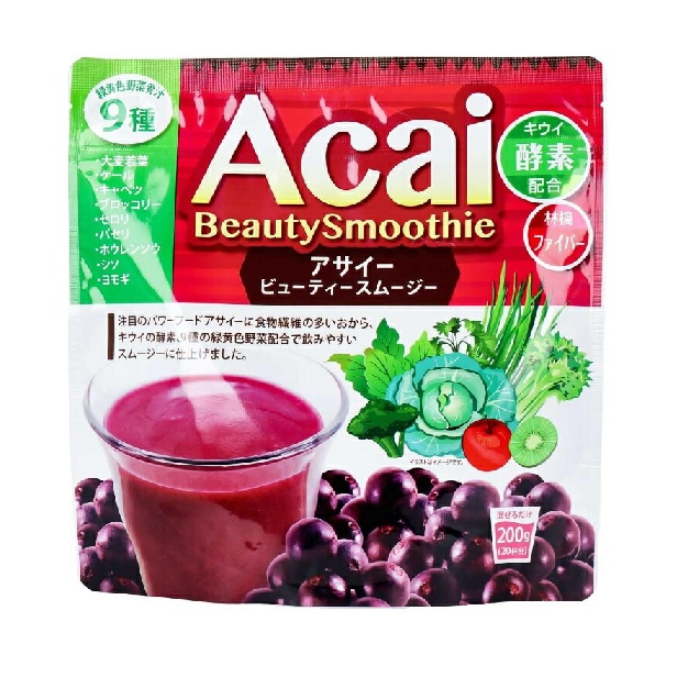 原材料・成分乾燥おから、アサイースプレードライパウダー(マルトデキストリン、アサイー(果肉))、緑黄色野菜混合末(大麦若葉、ケール、デキストリン、ブロッコリー、ホウレンソウ、セロリ、パセリ、キャベツ、シソ、ヨモギ)、フィッシュコラーゲン、海藻エキス、りんごファイバー、コンニャクイモ抽出物、植物油脂、キウイフルーツエキス末、ソルビトール、クエン酸、ブドウ果皮抽出物、増粘多糖類(キサンタンガム、グァーガム)、香料、卵殻末焼成カルシウム、甘味料(アステルパーム・L-フェニルアラニン化合物)、乳化剤、(原材料の一部にゼラチン、乳、大豆を含む)使用方法・10g(大きめのスプーンに軽く2杯位)を120cc程度の水に入れ、素早くかき混ぜて良く溶かして下さい。濃さはお好みに合わせて調整して下さい。 ・シェイカーを使ってお作り頂くと、より滑らかに美味しくお召し上がり頂けます。 ・お好みで牛乳やヨーグルトに混ぜても美味しくお召し上がり頂けます。商品仕様シリーズ名 アサイー ビューティー スムージーブランド名 ユニマットリケン果実テイスト アサイー野菜テイスト 青汁原産国/製造国 日本単品容量 200g