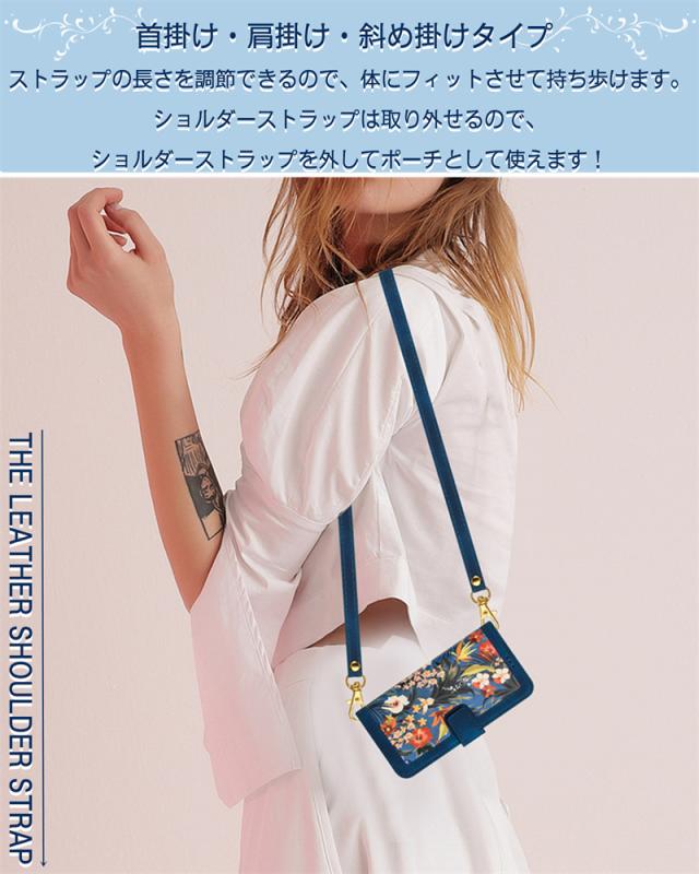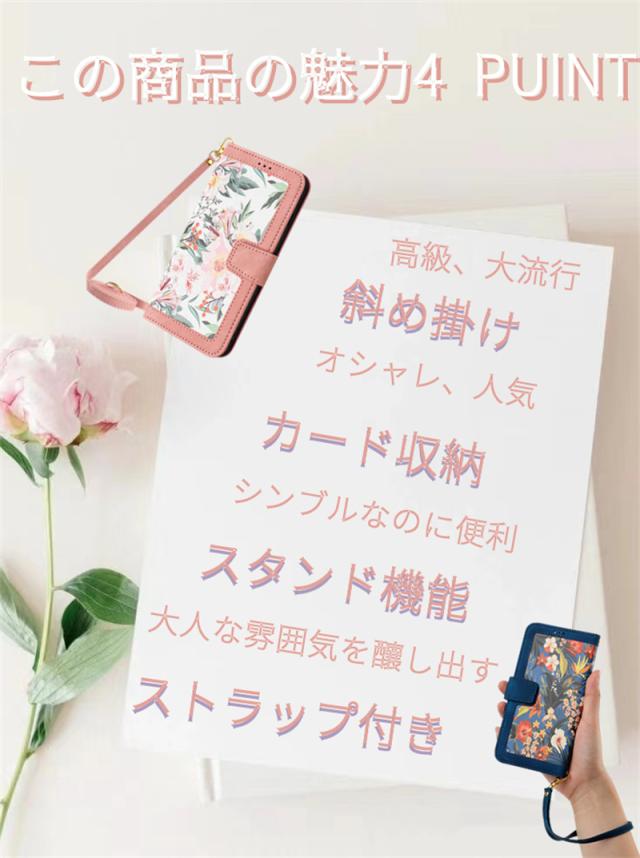 | 商品の特徴 | ショルダーストラップ付き、カードホルダー付き、スタンド機能、おしゃれなデザイン |