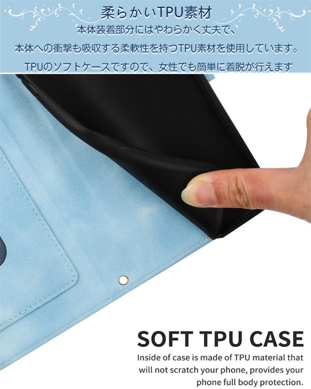 1、手帳型▽ 手帳型のデザインでボタンを包んで、埃を防ぎます。 また、柔軟性を持つTPUを使用することでボタンも押しやすいです。 2、滑り止め、指紋防止、傷防止▽ ケースの表面に特殊な加工を施し、指紋が付きにくく傷にも強いです。 また滑り止め効果もあります。 3、精密な設計▽ 各ホール部分の正確な設計デザイン サイドボタンもピッタリ設計なのでホールやボタンを保護し、カバーが操作を妨げません。 4、カード収納▽ カバー裏面にカード収納があり、ICカードや名刺などを収納することが可能です。 5、マグネット式▽ マグネット式ベルト、開閉しやすく、他機能の使用を邪魔しません。 |