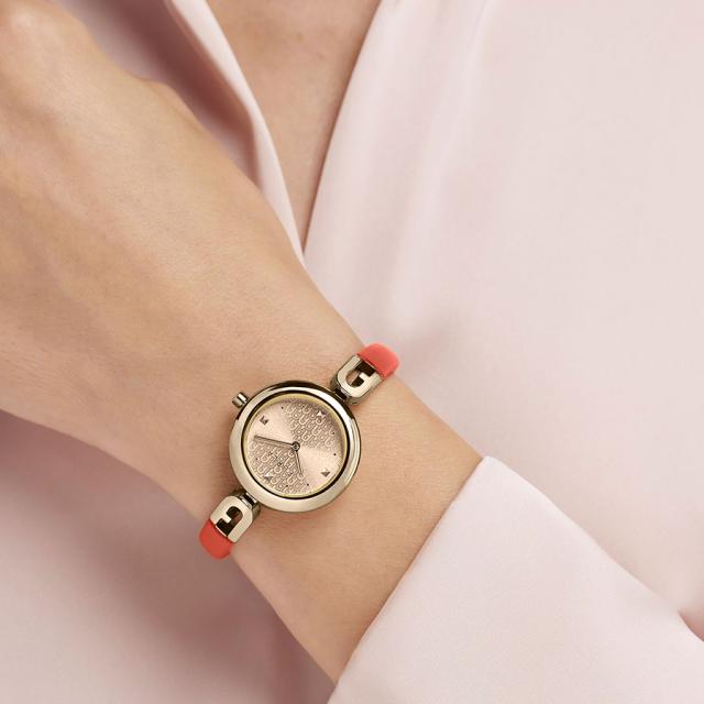 FURLAのウォッチは、時刻を告げるだけでなくブランドの持つクリエイティブさや高い質、細部へのこだわりが詰まっています。バッグと同じく、素材の持つ特性に合わせて仕上げが施され、それらが相まり一目でわかる“フルラ・デザイン”の調和を生み出しています。
