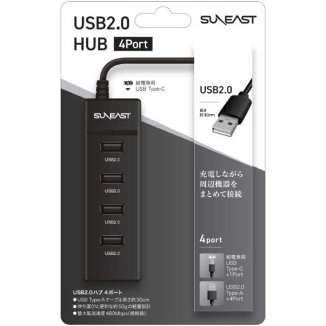 SUNEAST [USB-A オス→メス USB2.0typeAx4]USBハブ [バスパワー /4ポート /USB2.0対応] SE-RU2HUBA4A2