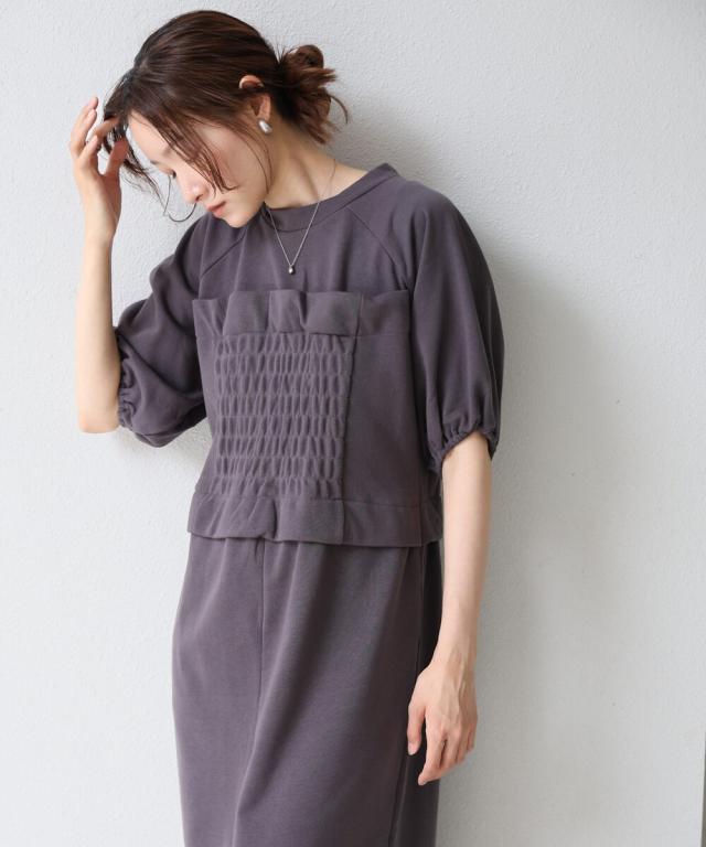 カジュアルなスウェットワンピースがビスチェ風デザインでシックなイメージにブラッシュアップ!一癖あるBabらしい1着になりました。ビスチェ部分はゴムシャーリングも相まってウエストがキュッとスタイルアップして見えます。二の腕をカバーしてくれるバルーンスリーブや甘さ控えめなセミタイトのシルエットもレディな雰囲気漂う嬉しいポイント。フロントの大胆なスリットで抜け感のあるスタイルも叶えてくれます。