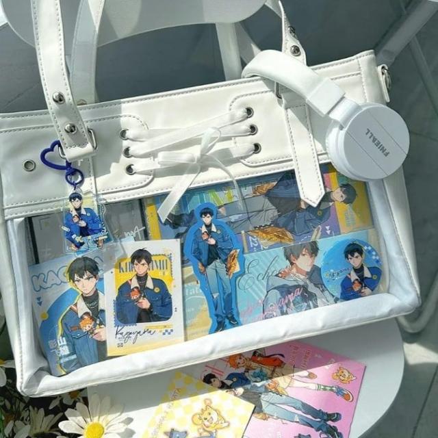 痛バッグ 痛バ ショルダーバッグ クリア レディース トート 痛バック PUレザー かわいい かばん A4 見せバッグ 推し アピール 同担拒否 オタク 缶バッチ 缶バッジ 収納 小さめ 黒 イベント アニメ 透明