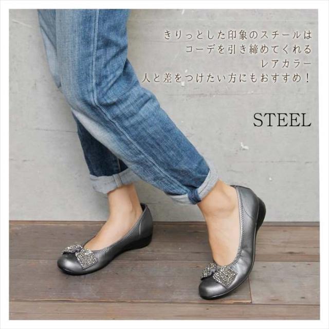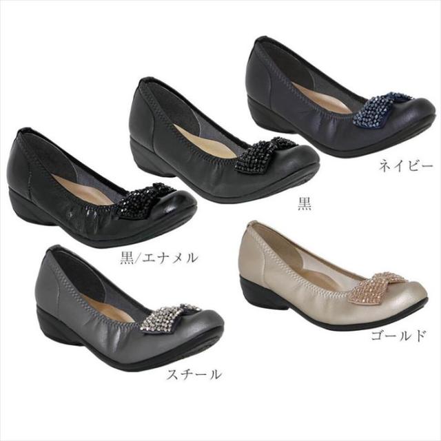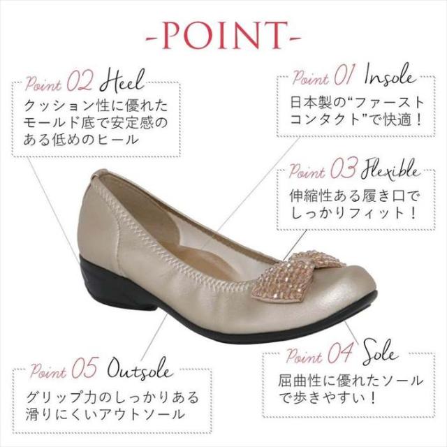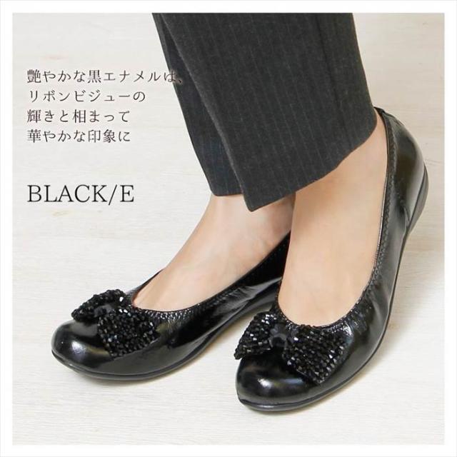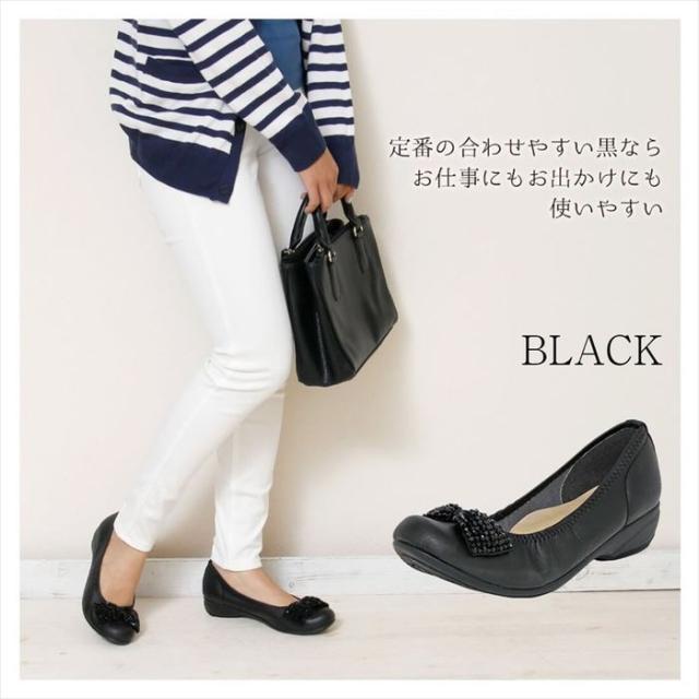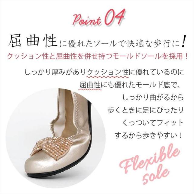 日本製 リボンビジューバレエパンプス コンフォートシューズ 外反母趾フラットパンプス 撥水 バレエシューズ ビジュー リボン フラットシューズ レディース 大きいサイズ 痛くない 走れるパンプス 通勤