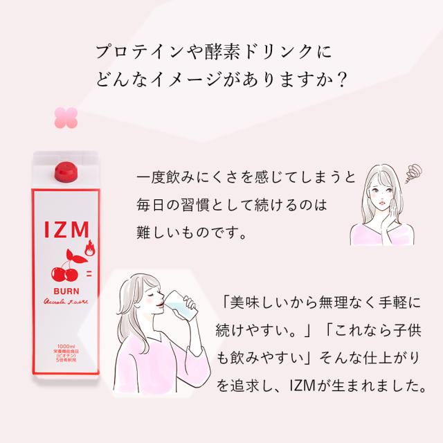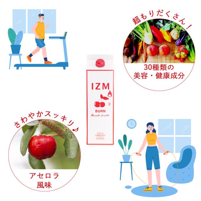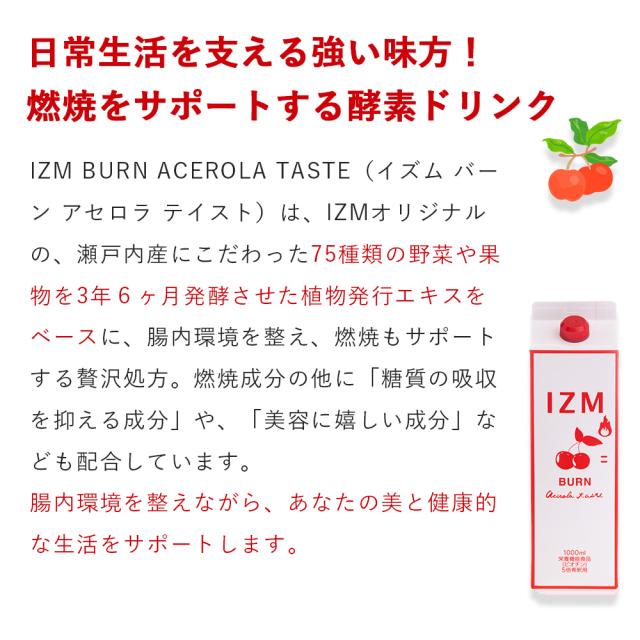 IZM BURN イズム バーン アセロラ味 1000mL【 3本セット 】5倍希釈 栄養機能食品(ビオチン)酵素ドリンク 脂肪燃焼 腸内環境 美容 ダイエット 代謝 健康 美味しい 飲みやすい 燃焼サポート L-カルニチン イノシトール ガルシニアエキス 運動不足に 保存料不使用