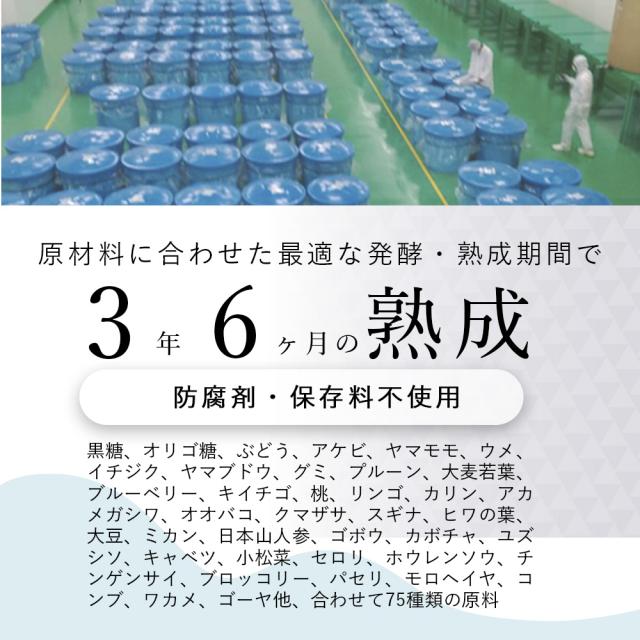 | 原材料名 | イソマルトオリゴ糖液糖(国内製造)、りんご酢、植物発酵エキス、ハチミツ、ガルシニアエキス、菊芋抽出物、高麗人参エキス、ブラックジンジャーエキス末、ハトムギエキス、ヒハツ抽出物、L-カルニチン、マカエキス、金時ショウガエキス、カンゾウエキス、ハーブエキスパウダー、エラスチン加水分解物、サケ鼻軟骨抽出物(プロテオグリカン含有)、サラシアエキス/酸味料、香料、甘味料(ステビア、スクラロース)、イノシトール、L-ロイシン、L-イソロイシン、L-バリン、ヒアルロン酸、ビタミンB1、ビタミンB2、ビタミン B6、ビオチン、ビタミンB12、(一部にキウイフルーツ・さけ・大豆・もも・りんごを含む) |