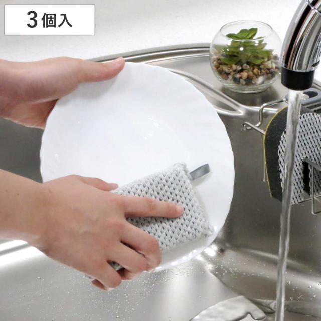 キッチンスポンジ アクリル毛糸のキッチンスポンジ 3個入 ( スポンジ キッチン アクリル 抗菌 防臭 ループ付き 油汚れ 茶渋 食器洗い 台所スポンジ 食器用スポンジ ネットスポンジ 水だけ 食器 長持ち エコ 抗菌加工 銀イオン )