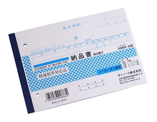 納品書(控)・納品書・請求書の3枚複写になっております。