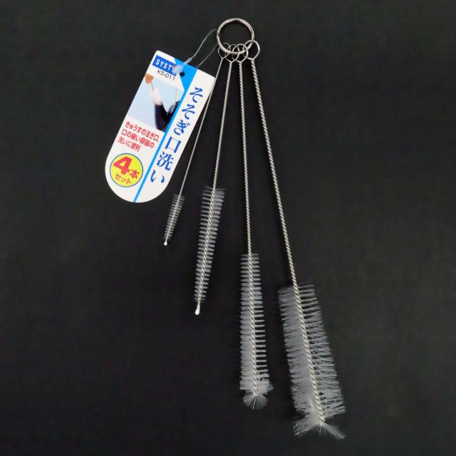ボトル洗い システィ そそぎ口洗い 4本セット ( ブラシ 台所用ブラシ ブラシセット 洗浄ブラシ ノズルブラシ 注ぎ口用 急須 やかん 調味料入れ ストロー 注ぎ口 キッチン掃除 キッチン清掃 ミニブラシ )