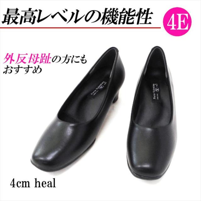 フォーマルパンプス 太ヒール ローヒール 4cmsスクエアトゥ 幅広 4eコンフォート パンプス 冠婚葬祭 黒 ブラック 防滑 外反母趾 通勤 ビジネス リクルート