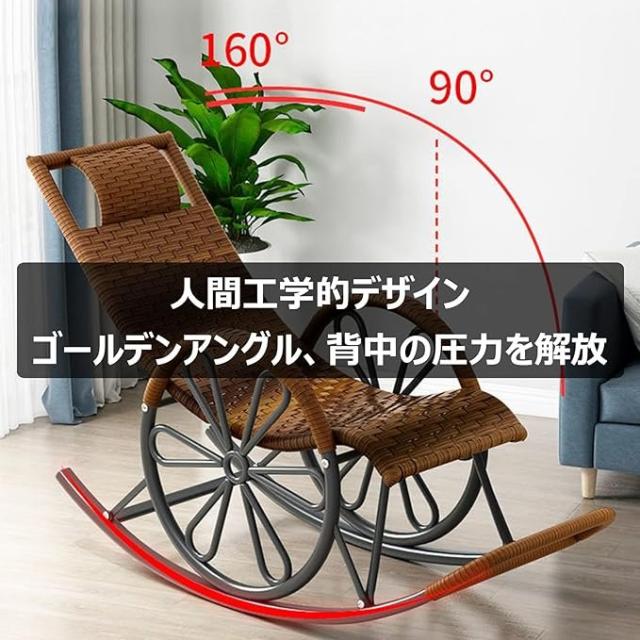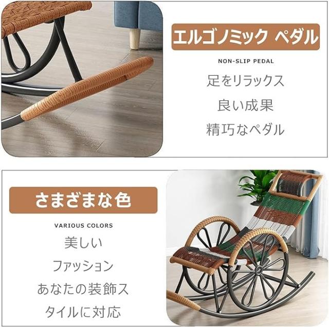 ロッキングチェア 籐椅子 揺り椅子 チェア ラウンジチェア 椅子 戸外籐椅 リクライニングチェア ペダル機能付き 耐荷重300KG 組み立てが簡単