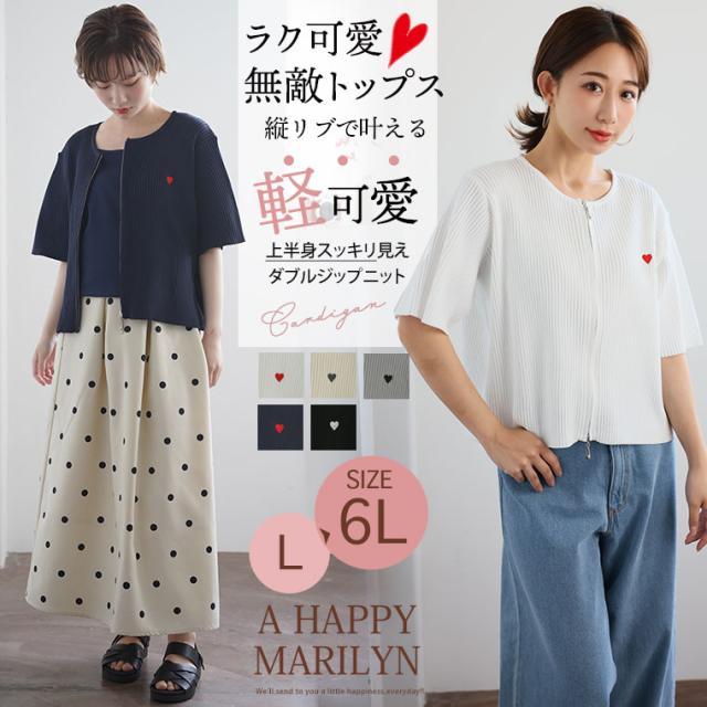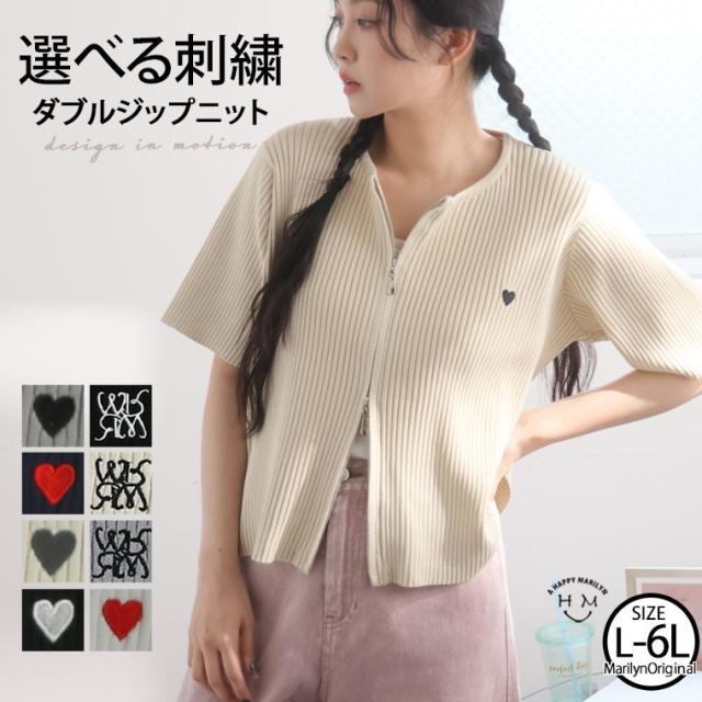 新作 大きいサイズ レディース トップス | 新デザイン追加!! ラク可愛 無敵トップス 刺繍 ダブルジップ ニット [432931] LL 3L 4L 5L 6L