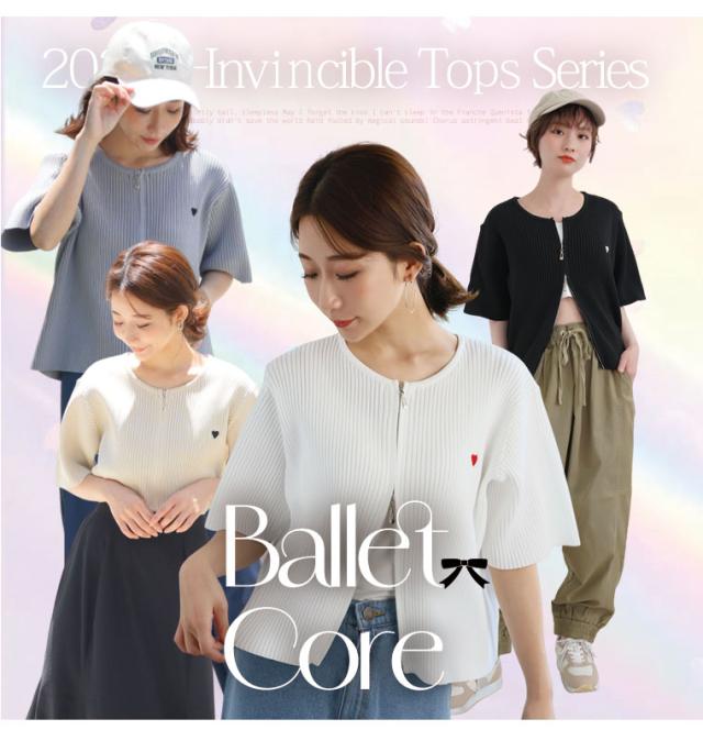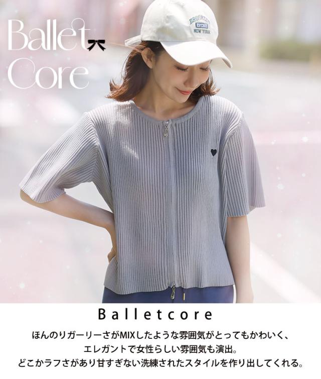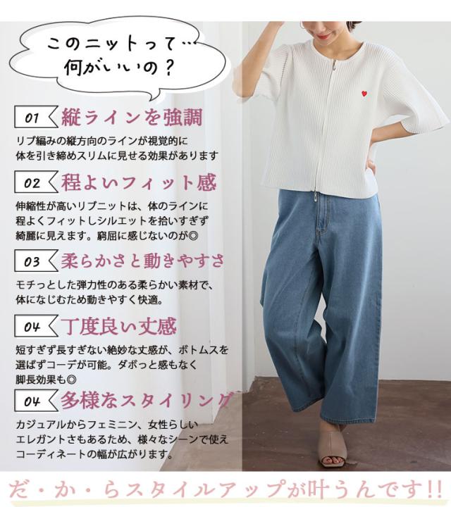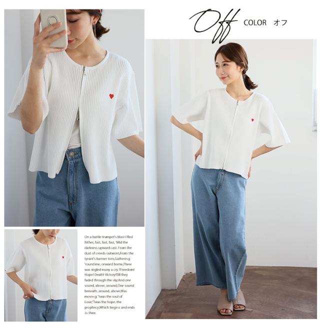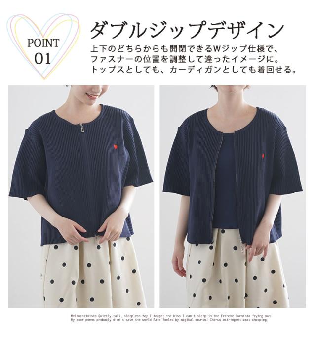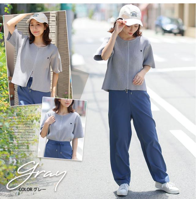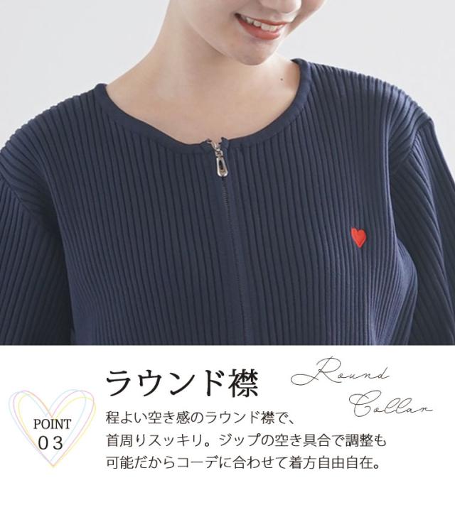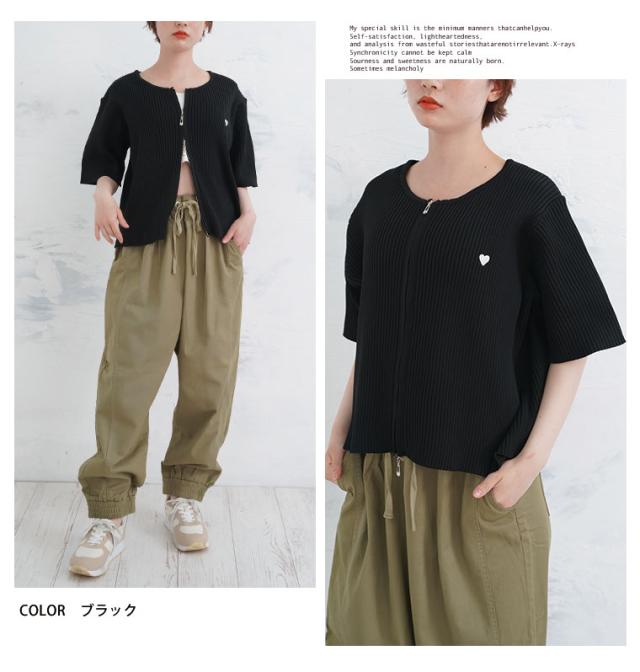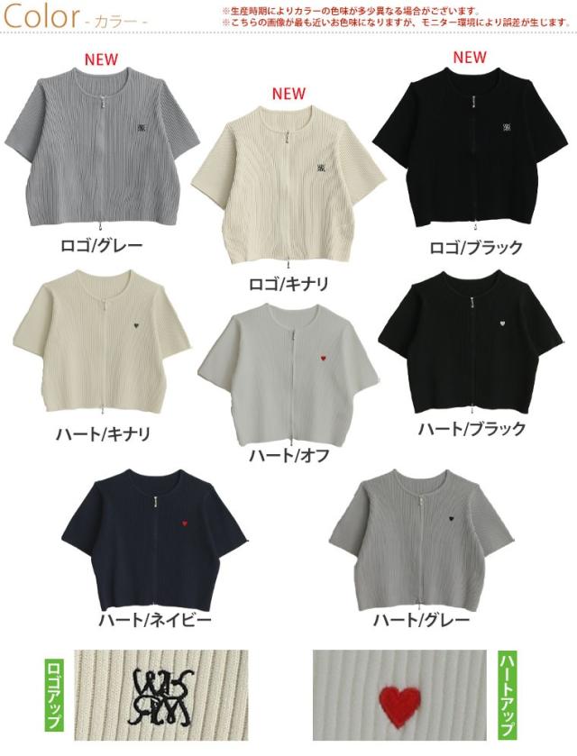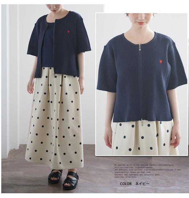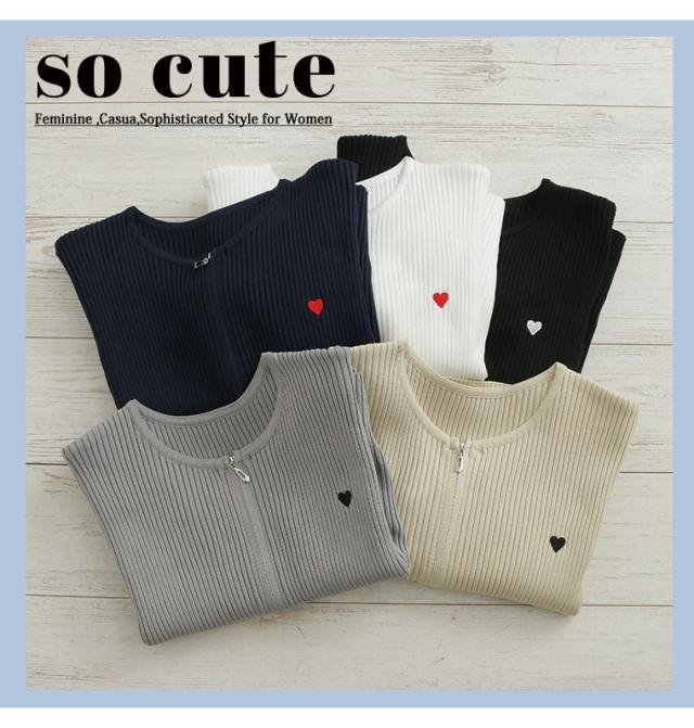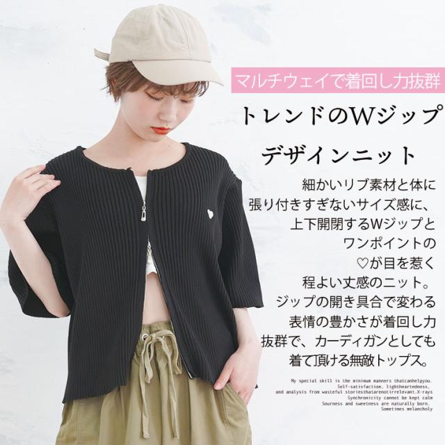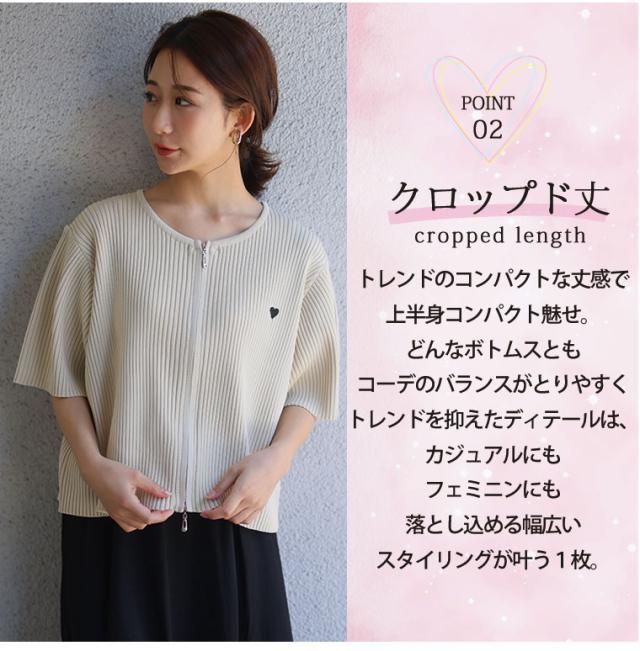 細かいリブ素材と体に張り付きすぎないサイズ感にWジップとワンポイントのハートが目を惹く。体型別コメント