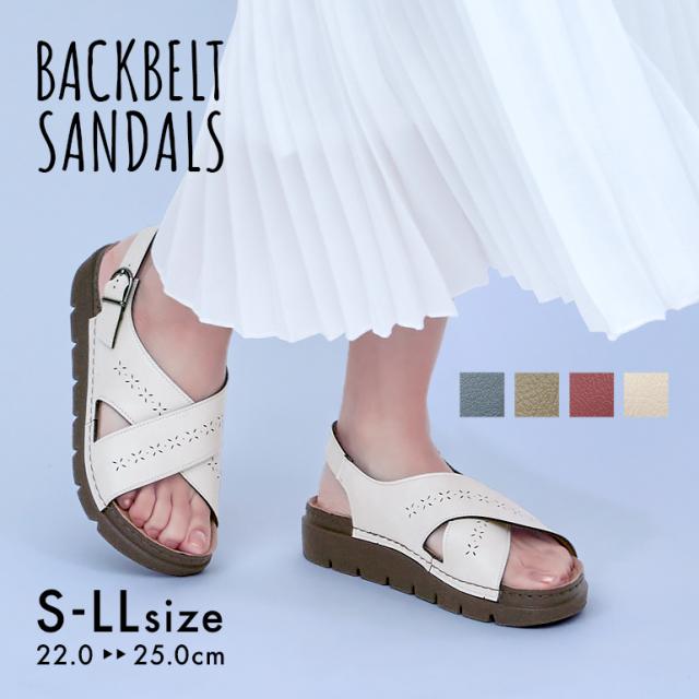甲にフィットするクロスデザインのバックベルトサンダル。クッション性に優れたインソールが足を包み込むようにフィットして、歩行をサポート!軽やかでストレスフリーな歩き心地です。