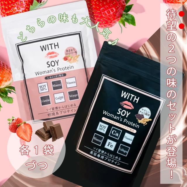 WITH SOY Woman's Protein チョコ(美容専用)&あまおう(燃焼系)のセット商品です♪