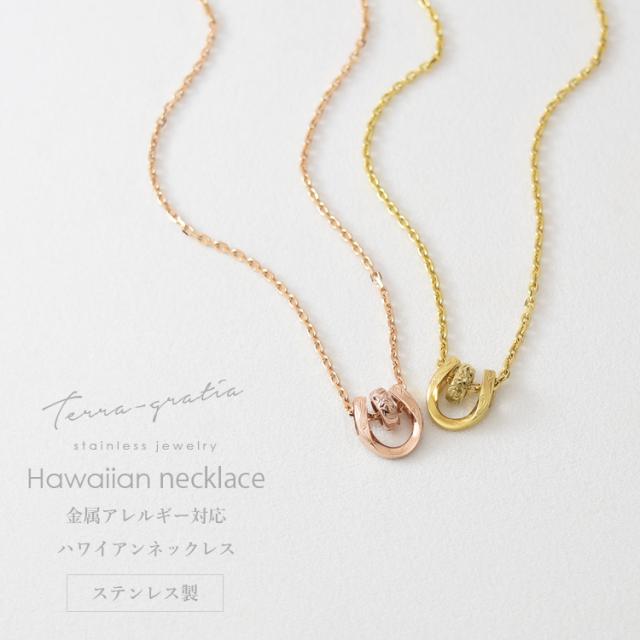 ハワイアンジュエリー ペアネックレス 2本セット 金属アレルギー ステンレス つけっぱなし ホースシュー 馬蹄 ハワイアン ハワジュ イエローゴールドカラー&ローズゴールドカラー lstn023_024yg_rg_pair