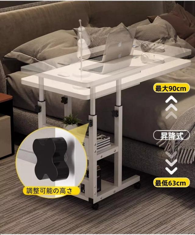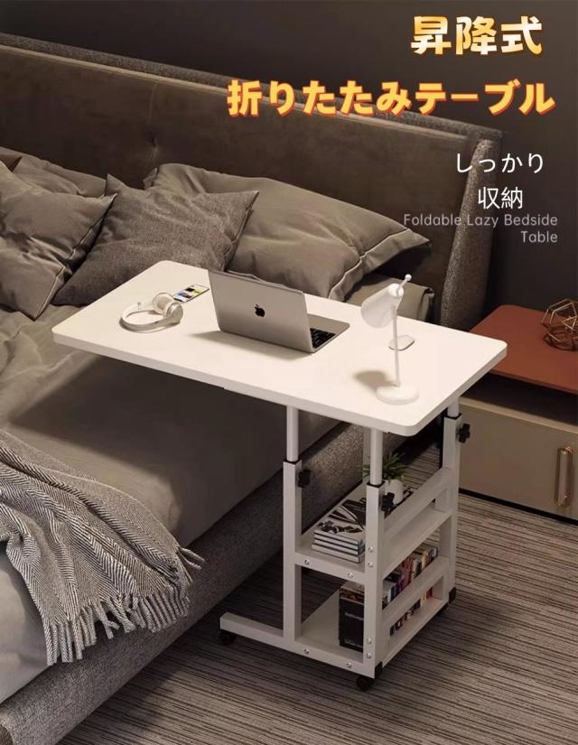 サイドテーブル ベッドテーブル パソコン デスク 学習テーブル 移動式 昇降式テーブル おりたたみサイド テーブル 高さ調節可能 収納