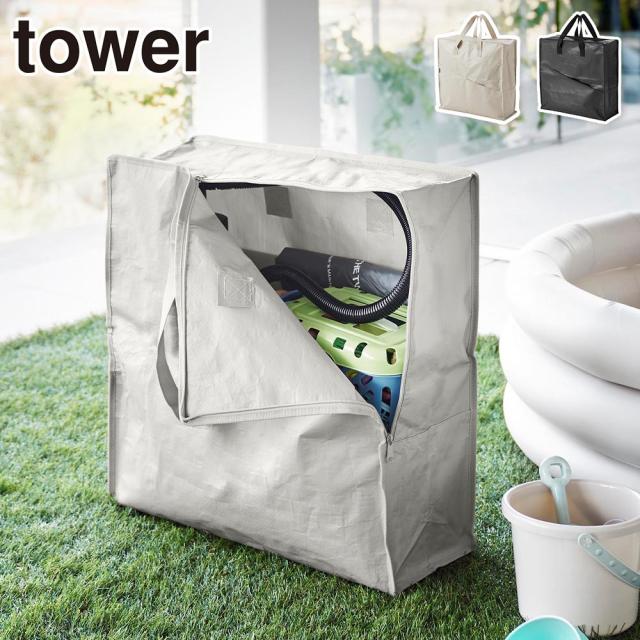 タワー ポリエチレンシートポケット付きおもちゃ収納バッグ 山崎実業 ライトグレー 1814 ブラック 1815 yamazaki tower【 収納バッグ トートバッグ 遊び道具収納 おもちゃ収納 収納袋 ポケット付き 持ち運び アウトドア キャンプ 送料無料 タワーシリーズ 】