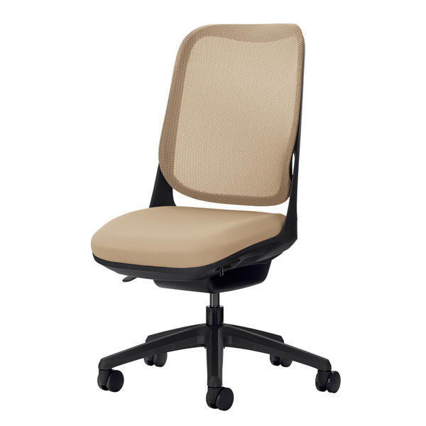 『代引不可』ライオン事務器 オフィスチェアー RIDE アームレスタイプ サンドベージュ 背フレーム色:ブラック脚ベース:ブラック『送料無料(一部地域除く)』