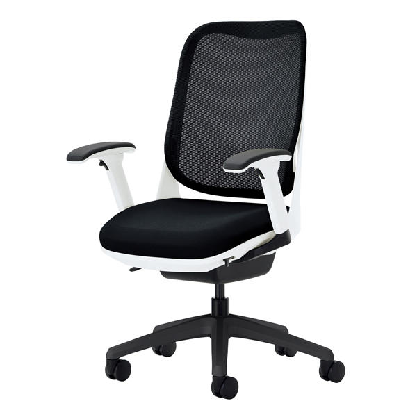 『代引不可』ライオン事務器 オフィスチェアー RIDE フレキシブルアームタイプ ブラック 背フレーム色:ホワイト脚ベース:ブラック『送料無料(一部地域除く)』