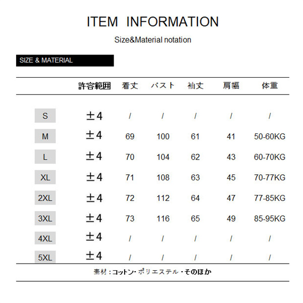 サイズ:/M/L/XL/2XL/3XL