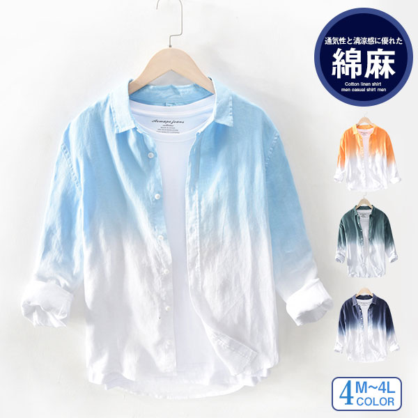 ポイント超超祭 綿麻シャツ メンズ 麻混シャツ カジュアルシャツ 配色 ラペル 夏シャツ 通勤 開襟 リネンシャツ 春物 夏服 カッコイイ スリム コットン
