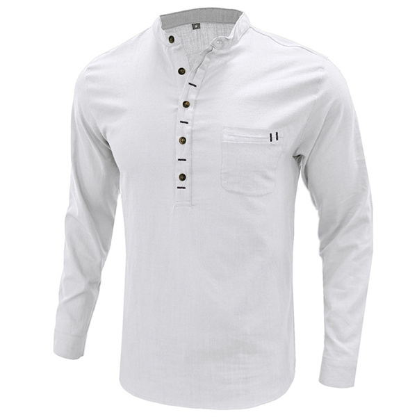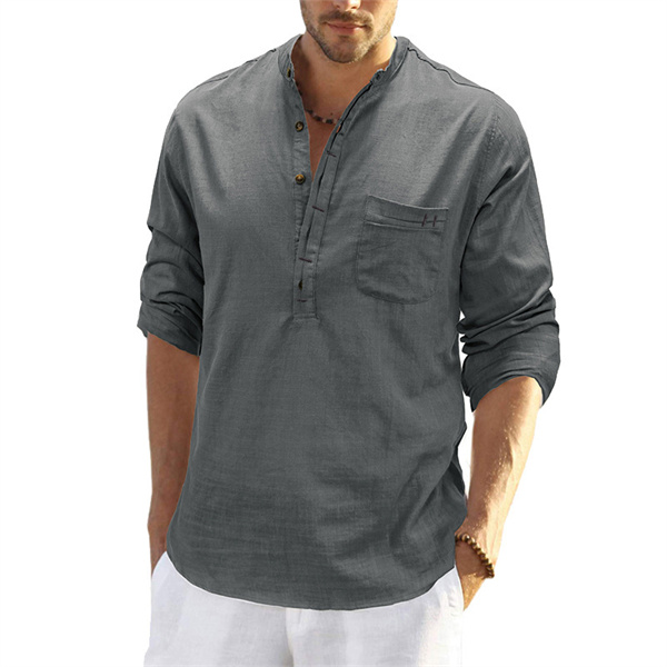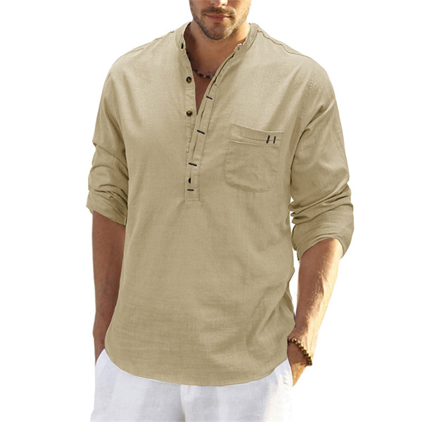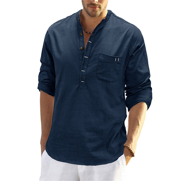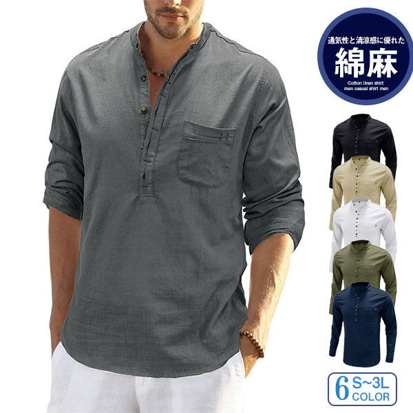 ポイント超超祭 綿麻シャツ メンズ 麻混シャツ カジュアルシャツ 胸ポケット付き スタンドカラー 夏シャツ 通勤 リネンシャツ 春物 夏服 カッコイイ スリム