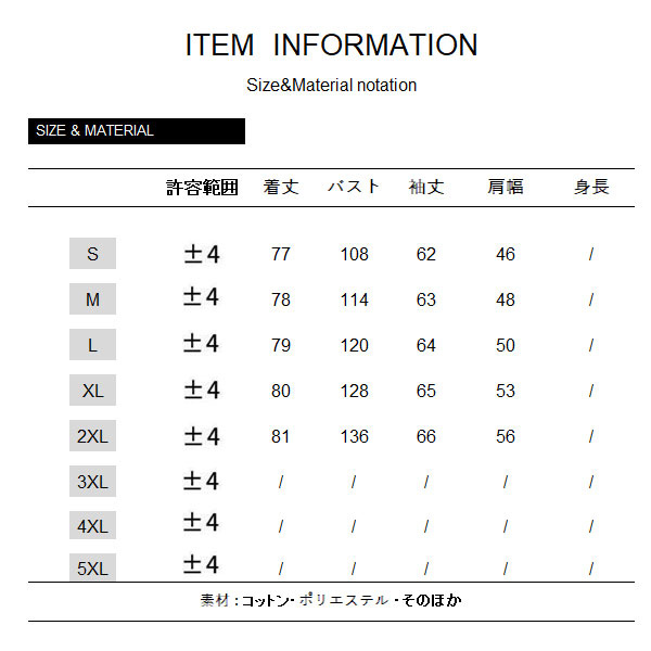 サイズ:/S/M/L/XL/2XL