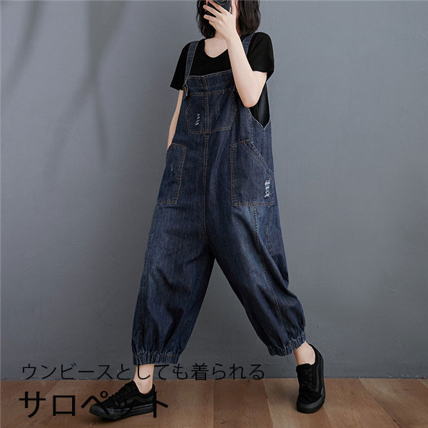 サロペット オールインワン デニムパンツ デニムサロペットパンツ レディース オーバーオール パンツ ジーンズ ワイドパンツ 大きいサイズ 送料無料