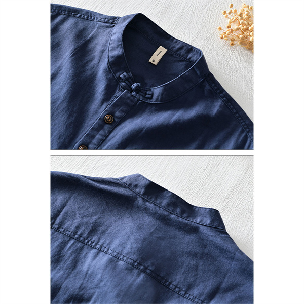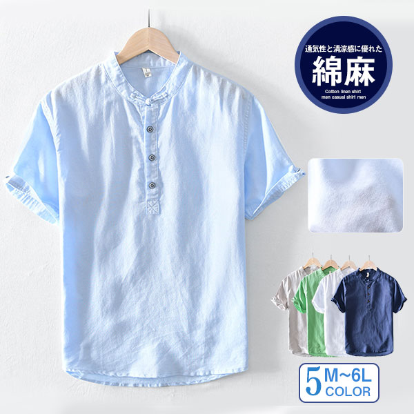 ポイント超超祭 綿麻シャツ メンズ カジュアルシャツ メンズシャツ 半袖シャツ スタンドカラー 無地 ゆったり カッコイイ 大きいサイズ 夏 男性 涼しい 彼氏