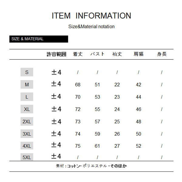 サイズ:/M/L/XL/2XL/3XL/4XL/5XL
