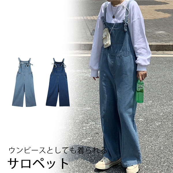 サロペット オールインワン デニムパンツ デニムサロペットパンツ レディース オーバーオール パンツ ジーンズ ワイドパンツ 大きいサイズ 送料無料