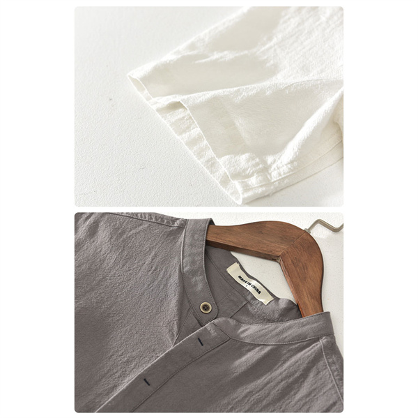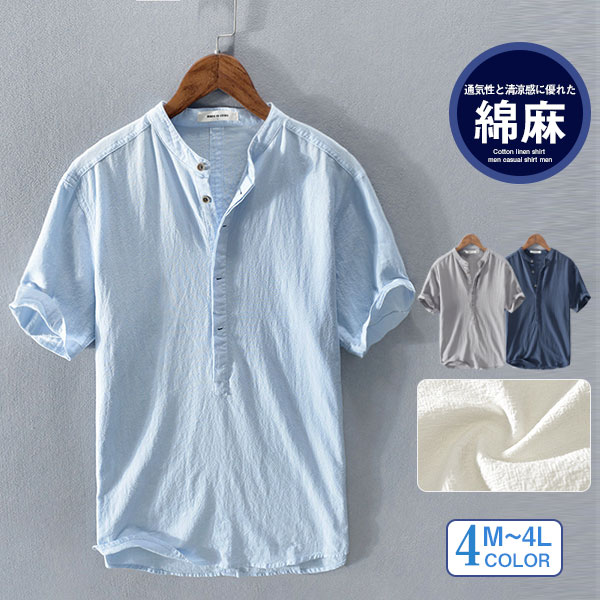 ポイント超超祭 綿麻シャツ メンズ 綿麻風 リネン トップス スタンドカラー 立ち襟 tシャツ 春夏 涼しい 薄手 通勤 通学 冷感 大きいサイズ 父の日 スリム