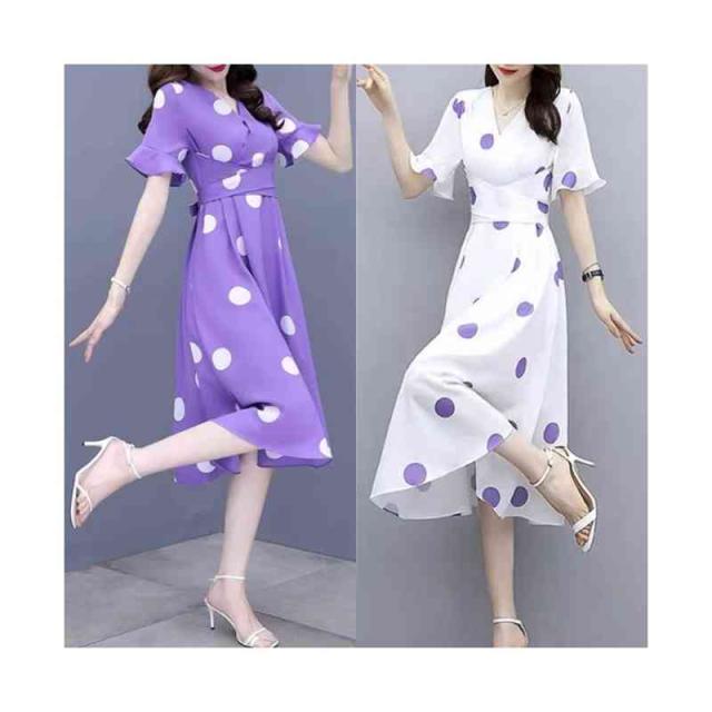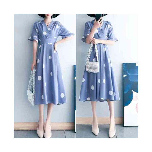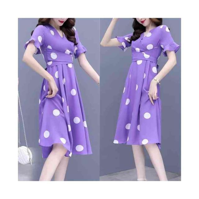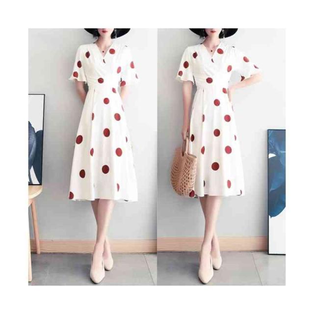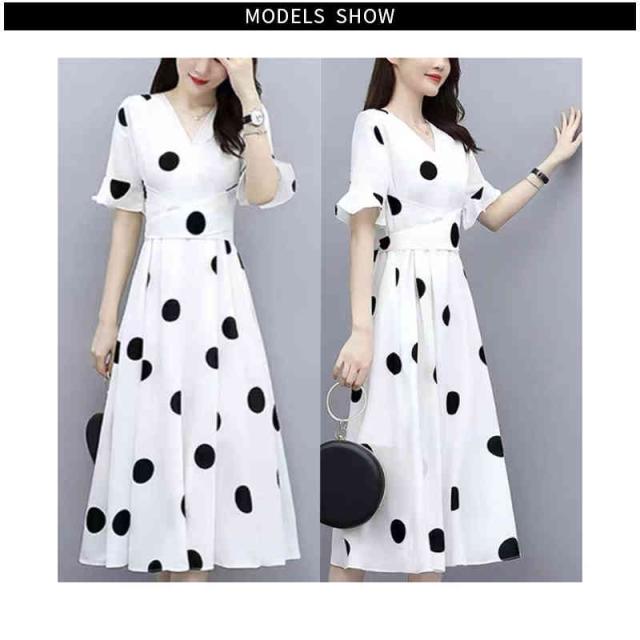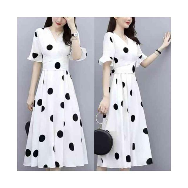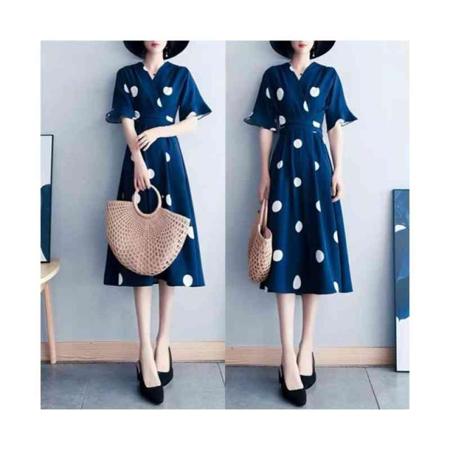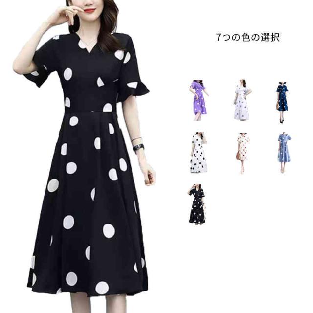 半袖ワンピース レディース 春夏 インナーワンピース ドットワンピース おしゃれワンピース フォーマルワンピース 半袖 ドット柄 おしゃれ インナーワンピース フレアワンピース シンプル カジュアル フェミニン おでかけ 送料無料