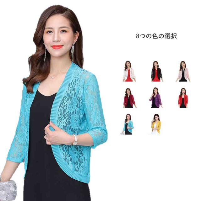 カーディガン レディース サマーカーディガン 総レースカーディガン ボレロ 羽織り 花柄レース ショート丈カーディガン フォーマル カジュアル 大きいサイズ 送料無料